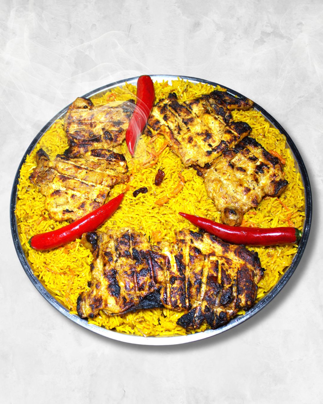صينية دجاج مشوي على الفحم مع رز بخاري 3 اشخاص