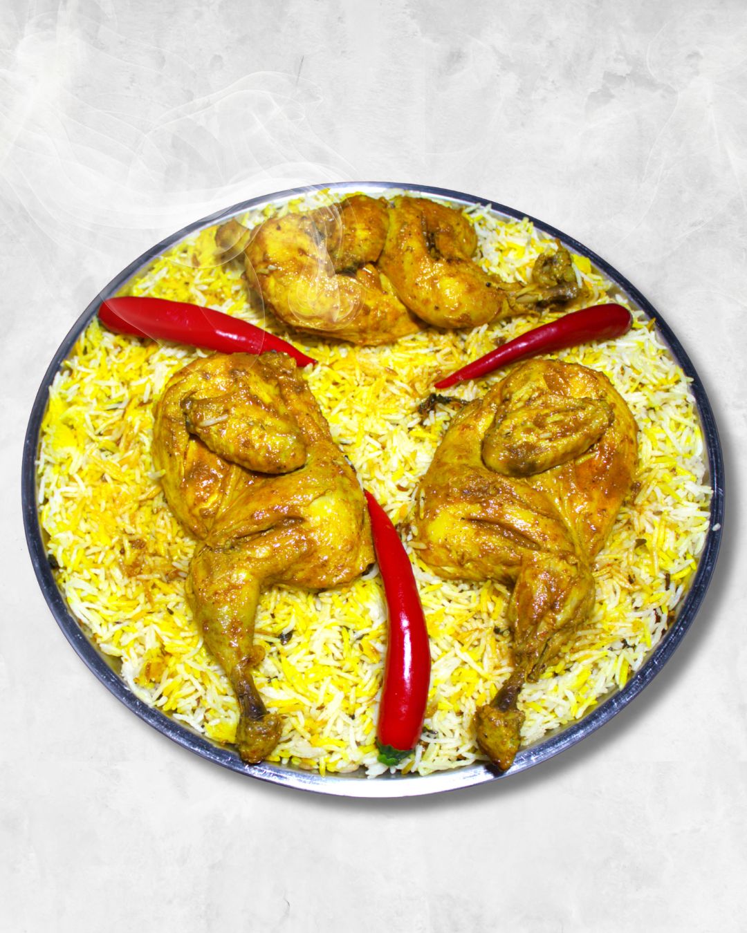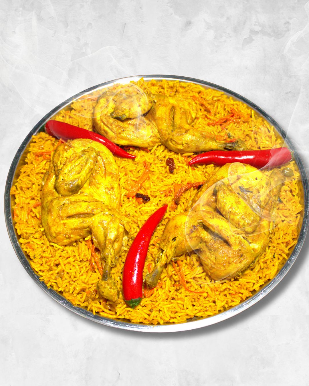 صينية دجاج مشوي على الفحم مع رز بخاري 3 اشخاص