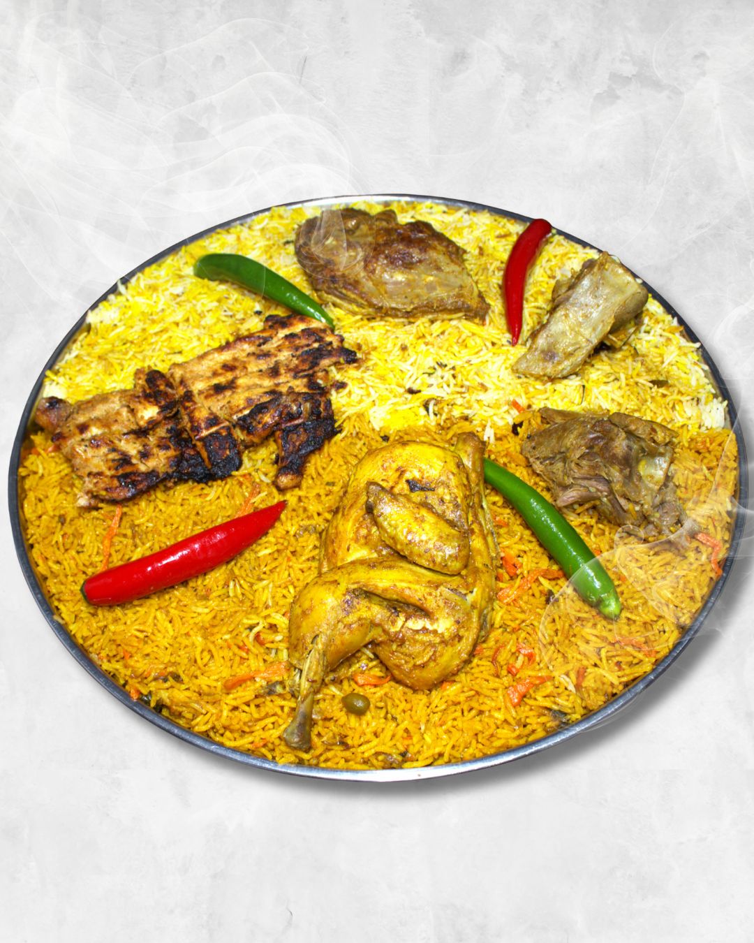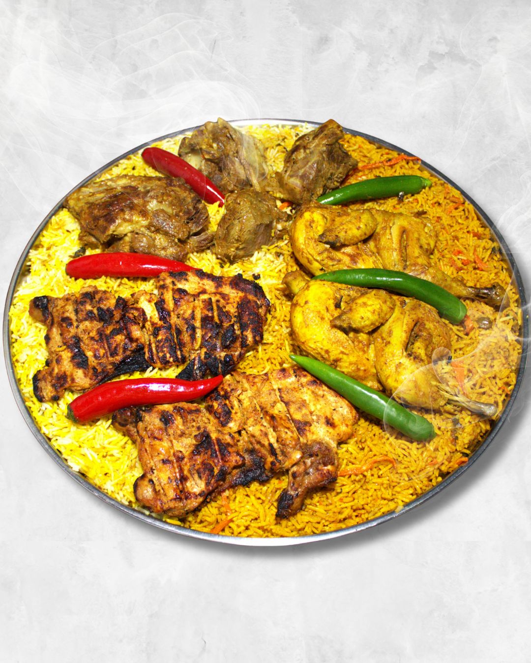 صينية مكس لحم طازج دجاج عادي ومشوي ورز بخاري وبريان 6 - 7 اشخاص